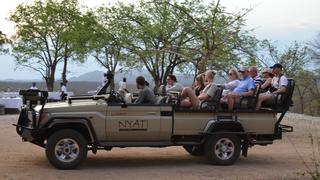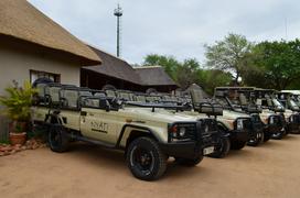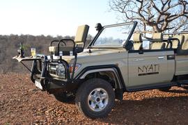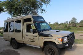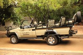 - 9 NYATI-bilar, öppna Toyota Land Cruisers. Används på NYATIs eget område på 10 000 hektar. Bilarna används särskilt vid "Big 5"-safari och vid solnedgångssafarier, så att vi kan se alla djuren, t.ex. elefant, lejon, leopard, noshörning, flodhäst, buffel, giraff och många, många fler.