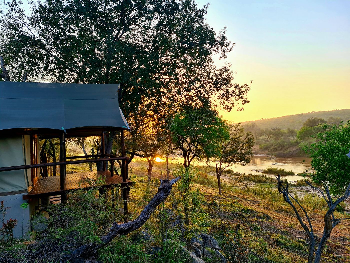 I våra familjevänliga Rhino-lyxtält kan du och familjen njuta av utsikten över Olifants River och bushens vilda djurliv. Tälten passar perfekt för familjer som vill ha en unik upplevelse tillsammans mitt i den sydafrikanska naturen. Njut av utsikten över Sydafrikas exotiska djurliv i naturliga, vackra omgivningar, och passa på att lära er mer om de olika djuren. Glamping-upplevelsens unika ramar skapar minnen för livet.