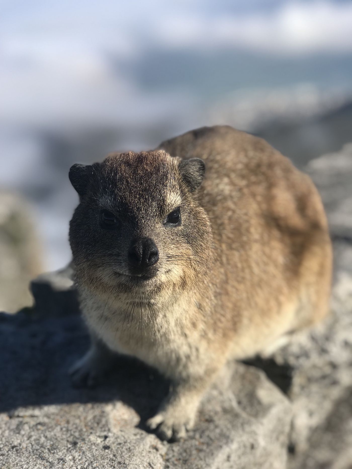 Karakteristisk för Taffelberget är även klipphyraxen eller klippgrävlingen (”the dassie”). Det kan kännas lite otippat, men klipphyraxen anses faktiskt vara den närmaste nu levande släktingen till den afrikanska elefanten. En gång för länge seden tror man att det fanns ett djur som såg ut som en korsning mellan en elefant, en sjöko och en klipphyrax.
