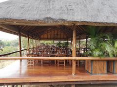 Gäster som har besökt Nyati Safari Lodge tidigare är väl bekanta med den legendariska gångbron. Allt trä på bron har bytts ut och vi räknar med att det nya fina teakträet håller de närmaste 20 åren. När vi köpte marken där Nyati Safari Lodge ligger rann det vatten under bron, men sedan dess har vattendraget torkat ut och i dag går bron bara över en liten fåra.