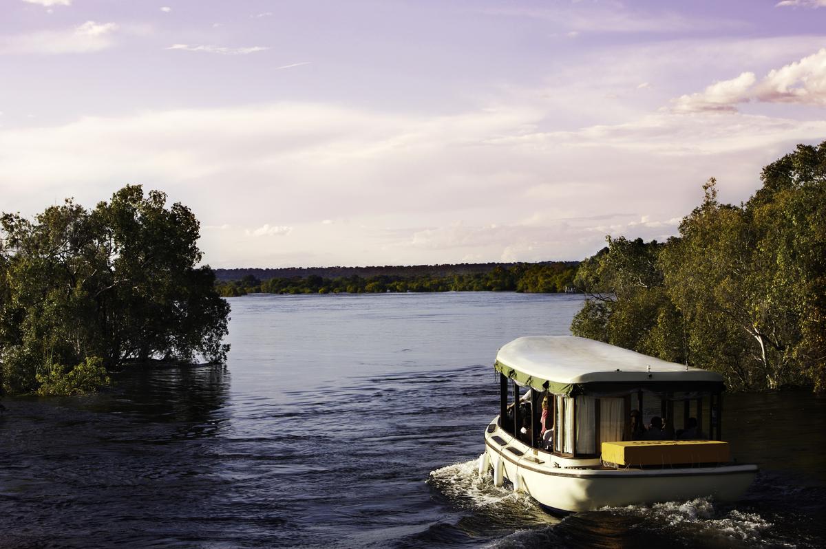 Mot slutet av dagen har vi inkluderat en vacker båttur på Zambezifloden i solnedgången. Du blir körd från hotellet till piren som båten avgår från. Under båtturen kan du ha turen att se flodhästar, krokodiler och många olika slags fåglar, medan du njuter av drycker och tilltugg ombord.